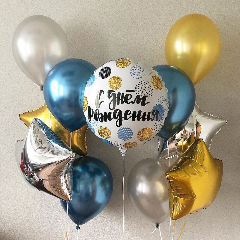 Набор воздушных шаров С днем рождения! Синие с золотом