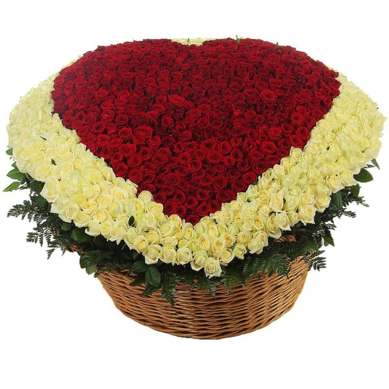 Корзина "Сердце" из 1001 красной и белой розы