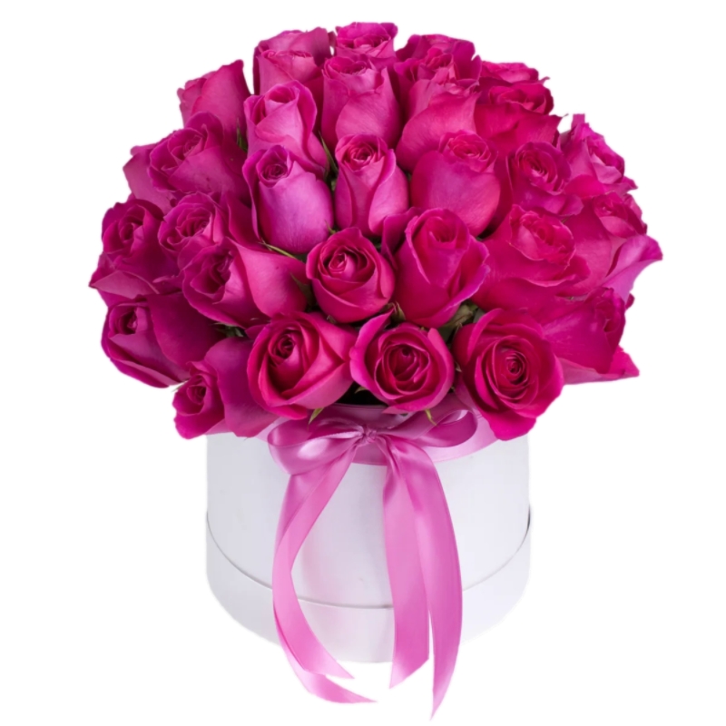 Букет из 35 малиновых роз в коробке