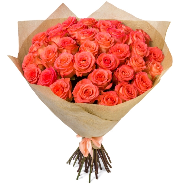 Букет из 35 оранжевых роз в крафте