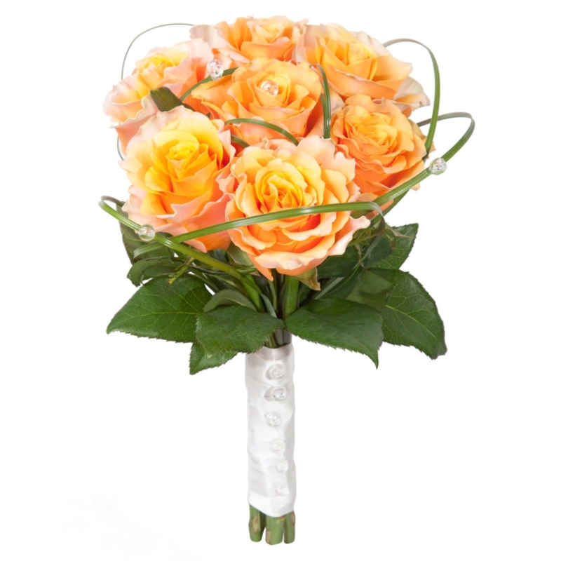 Букет состоит из 7 оранжевых роз, берграсс, атласная лента.