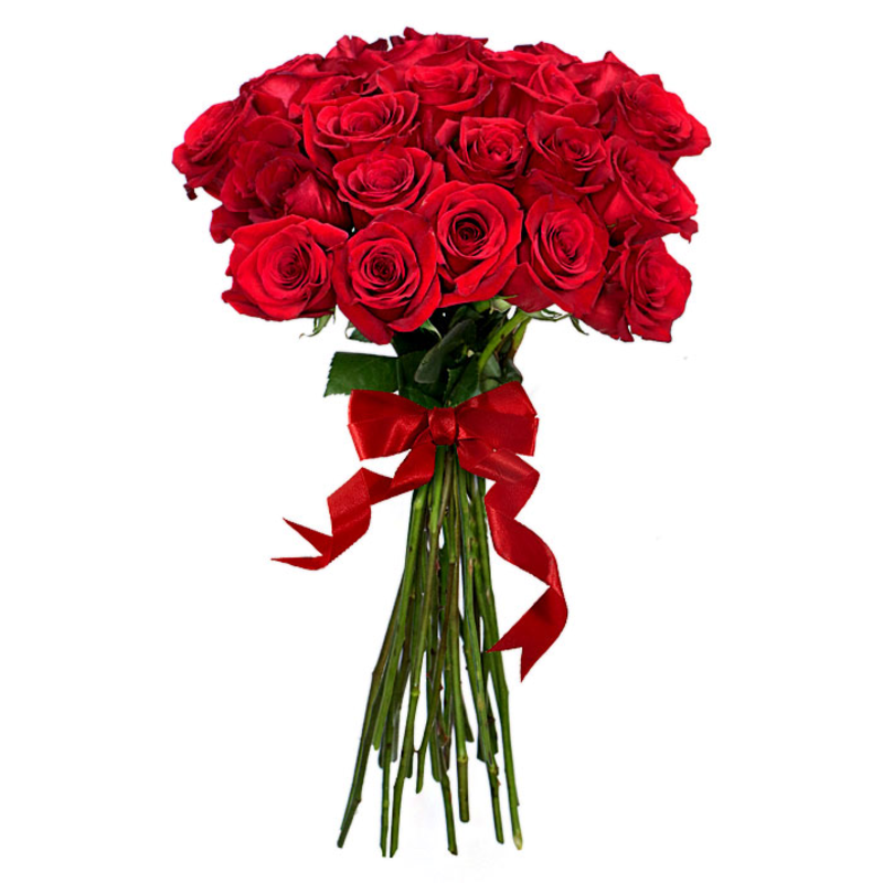 Букет состоит из 21 красная роза, прозрачная упаковка, атласная лента.